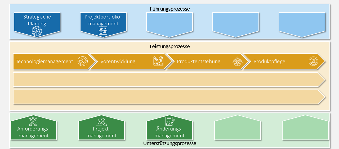 Eine gut implementierte Prozesslandschaft schafft klare Strukturen, fördert bereichsübergreifende Zusammenarbeit und ermöglicht es, Entwicklungsprojekte zielgerichtet, effizient und marktgerecht umzusetzen.ch etwas