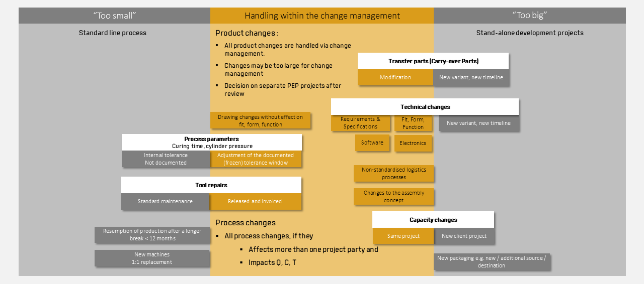 The automotive industry is changing constantly and ever faster. Cost and time pressure are constant companions. Of course, this also applies to Tier 1 suppliers, who have to offer, deliver and respond to customer requests in ever shorter timeframes. Changes by customers, suppliers or even the realisation of own improvement ideas are part of daily business. It is therefore important to have an efficient process that supports these necessities.